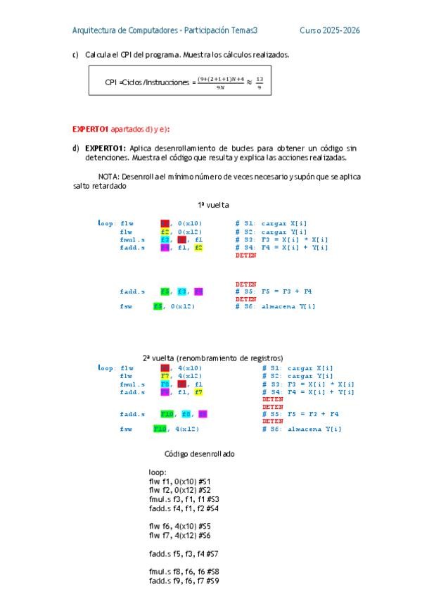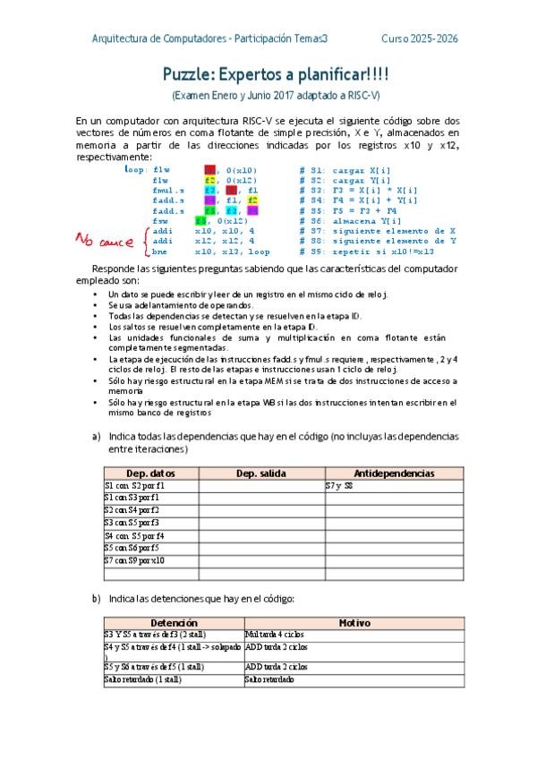 He publicado nuevos ejercicios de 3º Arquitectura de Computadores: ActividadExpertosaPLanificarestaticaRISC-V.pdf