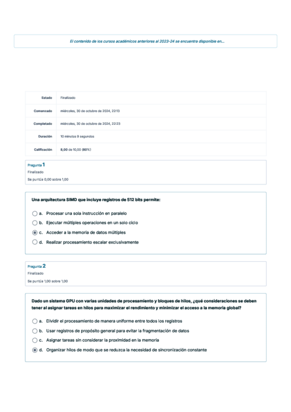 He publicado nuevos apuntes de 3º Arquitectura de Computadores: Cuestionario-Tema-4-ARCO-solucion.pdf