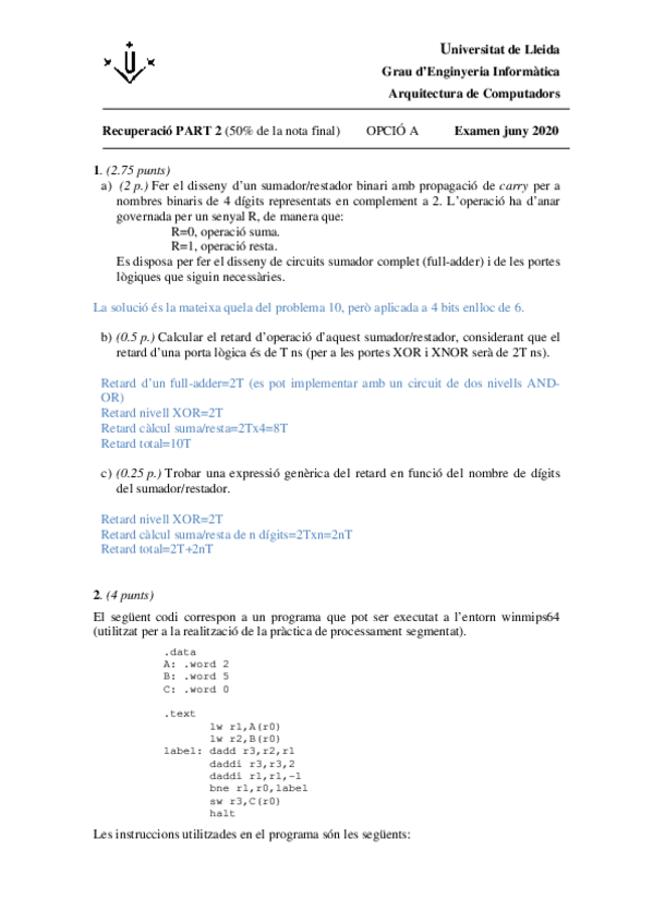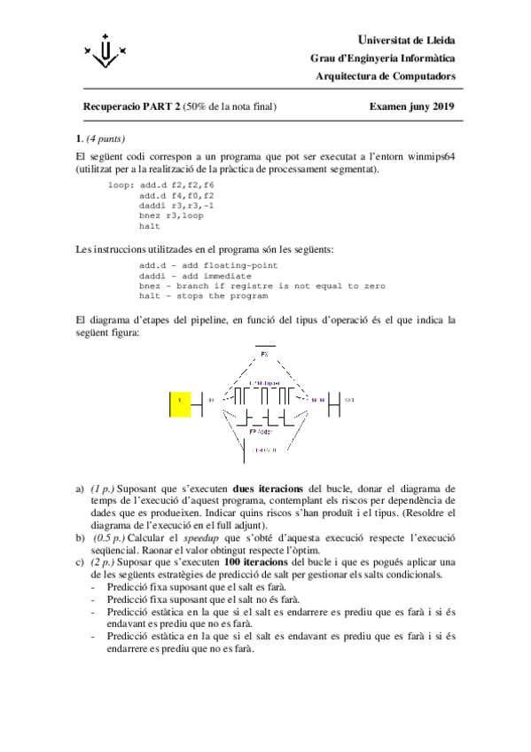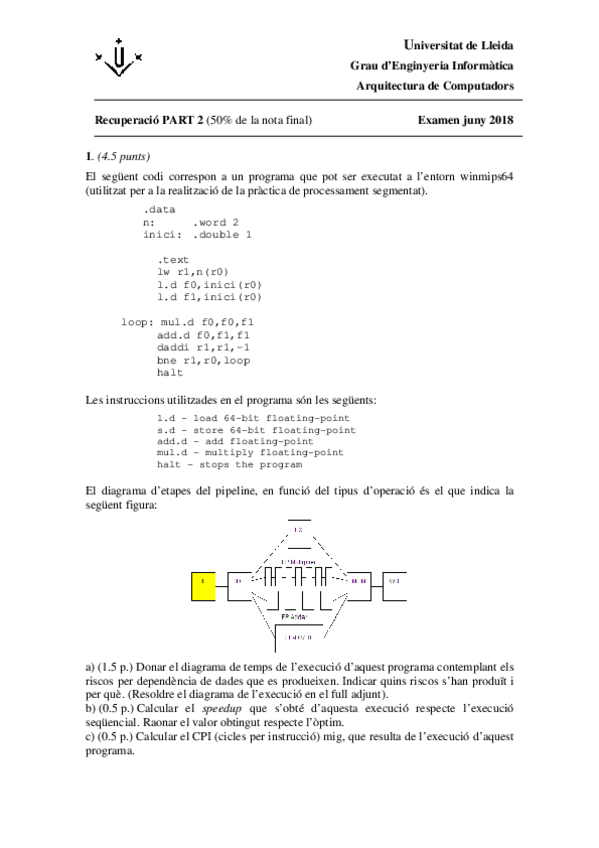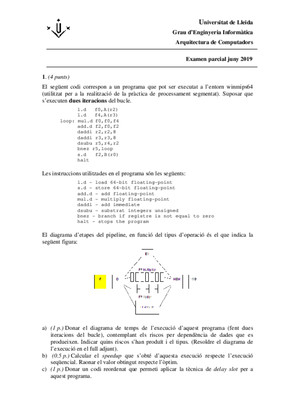 He publicado nuevos examenes de 2º Arquitectura de Computadors: exercicis-processament-segmentat.pdf