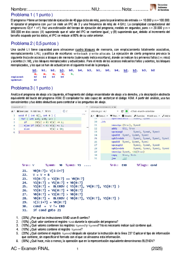 He publicado nuevos examenes de 2º Arquitectura de Computadors: Enunciat-1r-Parcial-23-24-ENG.pdf