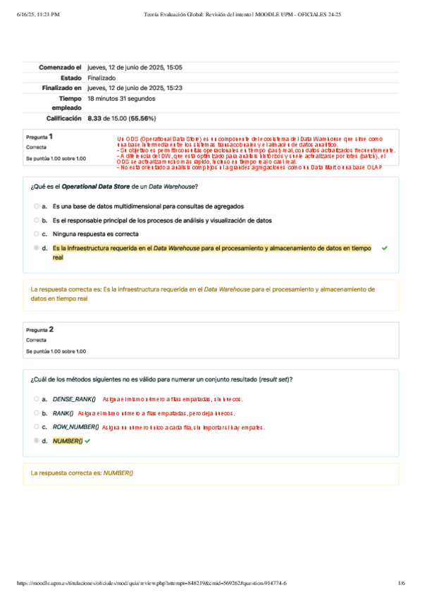 He publicado nuevos examenes de 4º ARQUITECTURA DEL DATA WAREHOUSE: Teoria-Evaluacion-Global-Revision-del-intento--MOODLE-UPM-OFICIALES-24-25.pdf