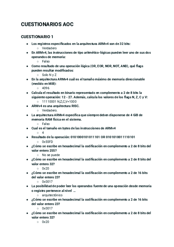 He publicado nuevos ejercicios de 1º Arquitectura y Organización de Computadores 1: Cuestionarios-AOC.pdf