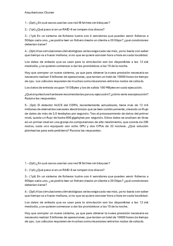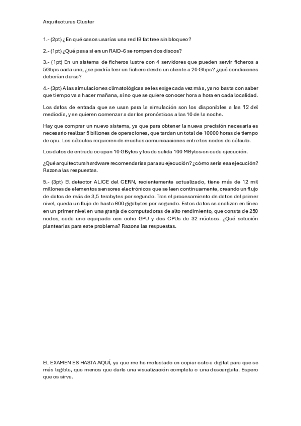 He publicado nuevos examenes de 4º Arquitecturas Clusters: PARCIAL 1 - CLUSTERS.pdf