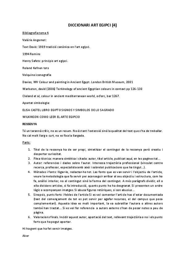 Parts per fer la ressenya, bibliografia tema 4 i diccionari (Aker, Ajet, Damnatio memoriae, Djed pilar...)
