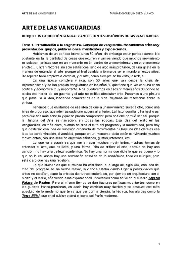 ¿Alguien tiene apuntes de la profesora María Dolores Jiménez-Blanco en la asignatura de Arte de las vanguardias?