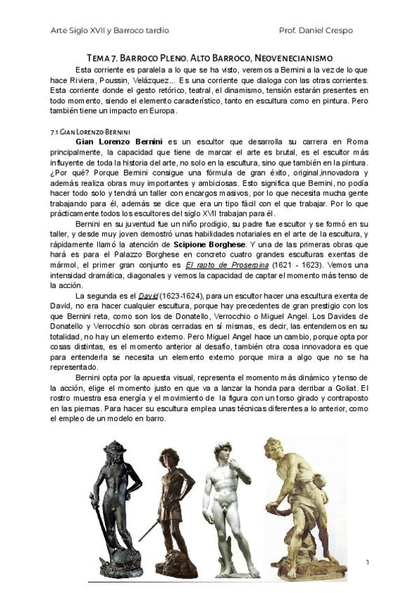 Apuntes completos Arte del Siglo XVII y Barroco Tardío