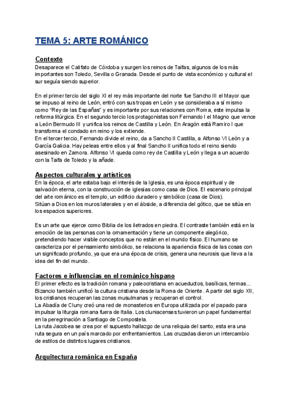 Los apuntes de Arte Español Medieval completos. El tema 5 se divide en dos porque el archivo era demasiado grande.