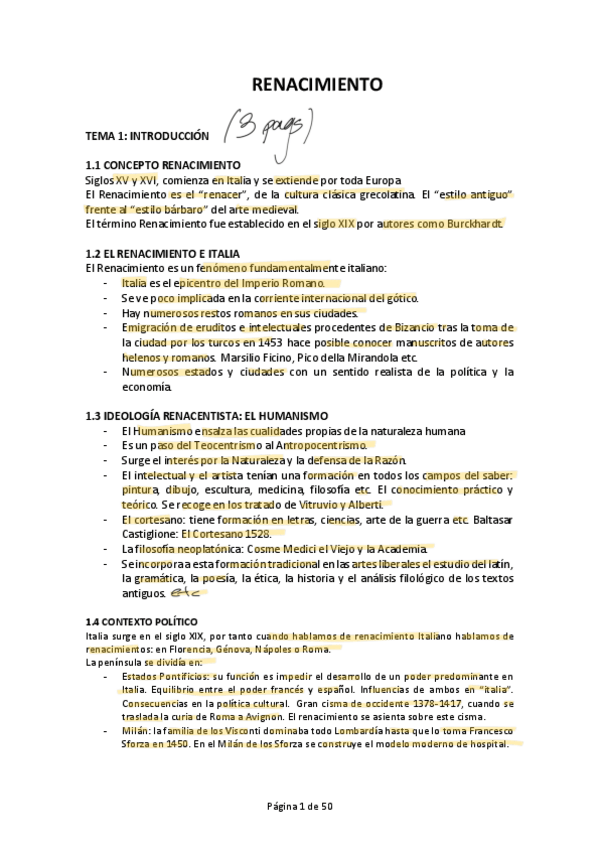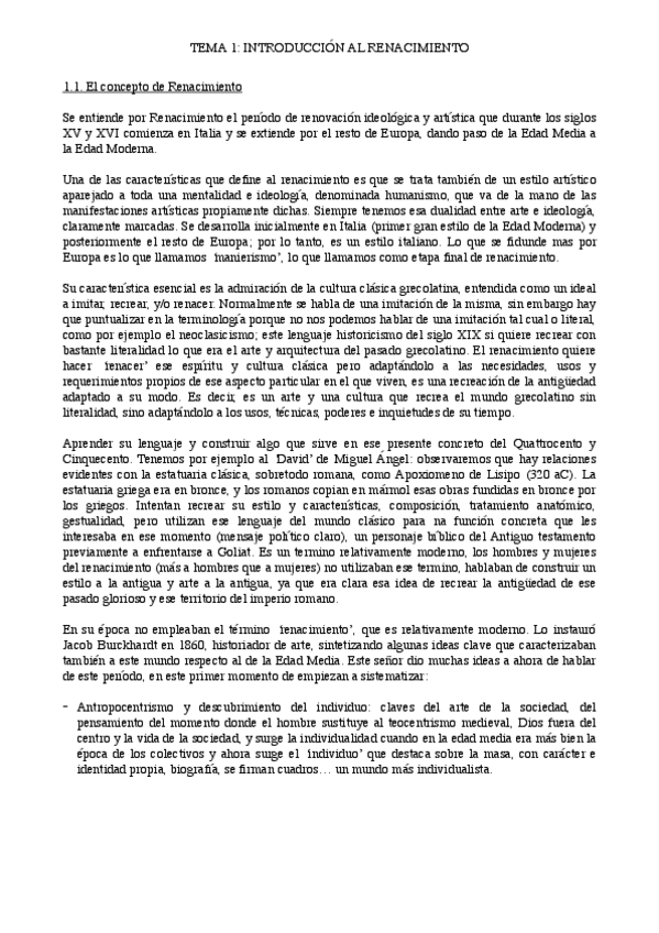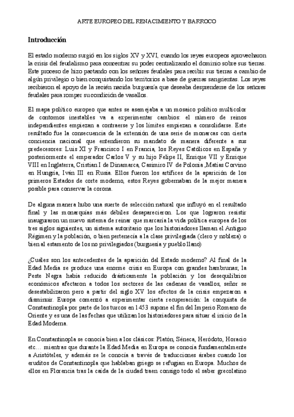 Apuntes completos de la asignatura de Renacimiento y barroco europeo con sobresaliente