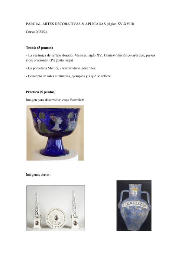 He publicado nuevos examenes de 4º Artes Decorativas y Aplicadas entre los Siglos XV y XVIII: PARCIAL-ARTES-DECORATIVAS-Y-APLICADAS-ENTRE-LOS-SIGLOS-XV-Y-XVIII.pdf