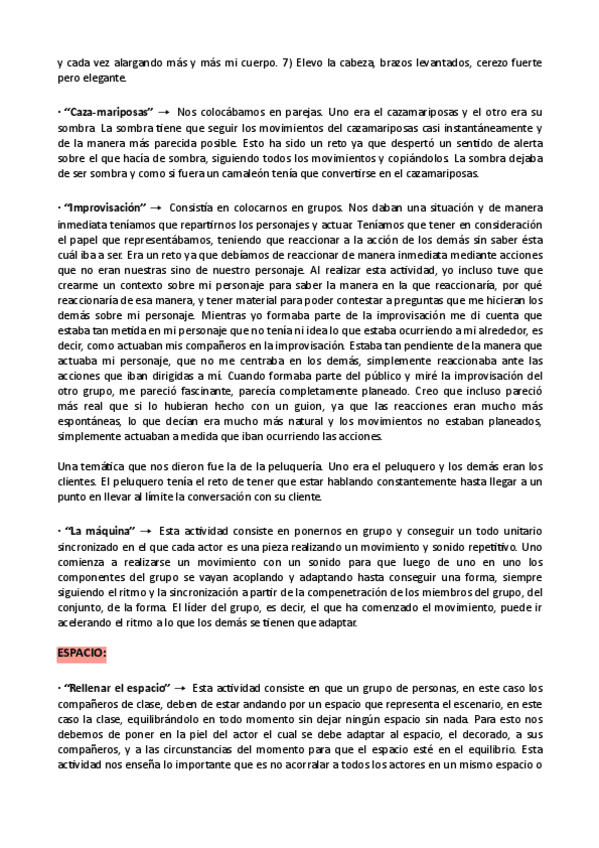 Actividades de expresión corporal, tono, espacio... que realizamos en clase y con las que se puede responder la pregunta 2 de la PAU con el visionado y análisis del vídeo.