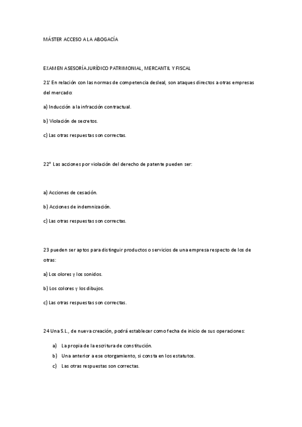 He publicado nuevos examenes de 1º Asesoría Jurídico Patrimonial, Mercantil y Fiscal: tipo test