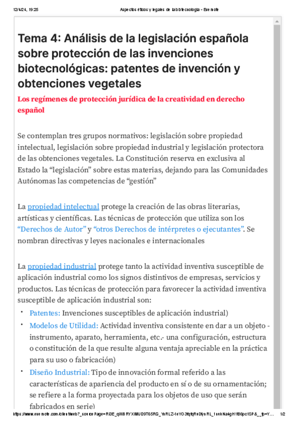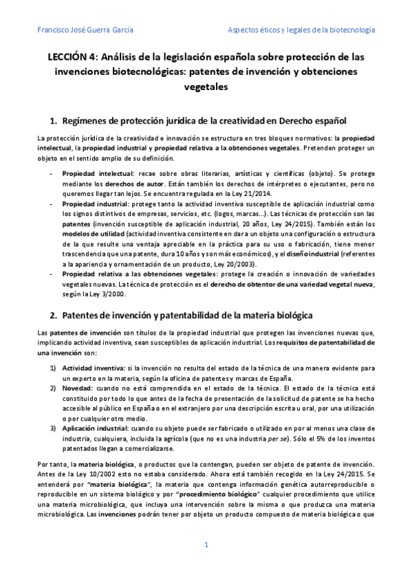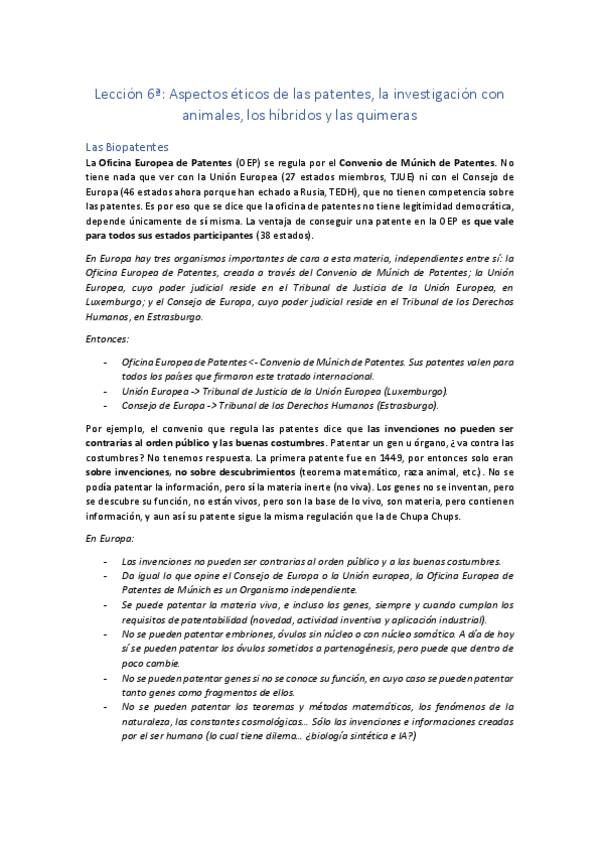 He publicado nuevos apuntes de 4º Aspectos Éticos y Legales de la Biotecnología: Teoría (Aspectos Legales)