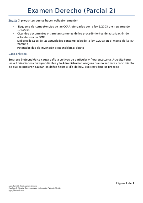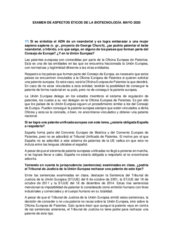 He publicado nuevos examenes de 4º Aspectos Éticos y Legales de la Biotecnología: Preguntas-preparacion-examen-Legal.pdf