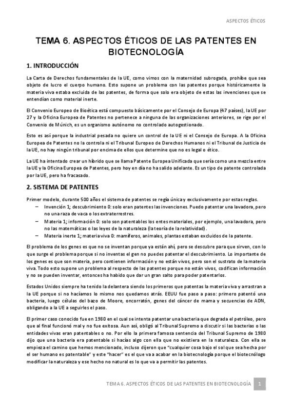 He publicado nuevos apuntes de 4º Aspectos Éticos y Legales de la Biotecnología: TEMAS DERECHO