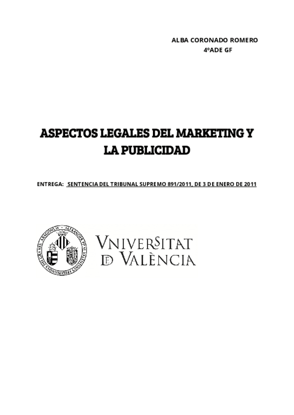 He publicado nuevos apuntes de 4º Aspectos Legales del Marketing y la Publicidad: SENT.pdf