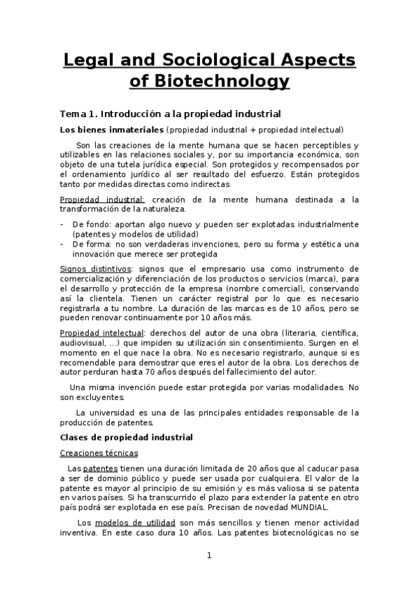 He publicado nuevos apuntes de 4º Aspectos Legales y Sociológicos de la Biotecnología: ALSB-1.pdf