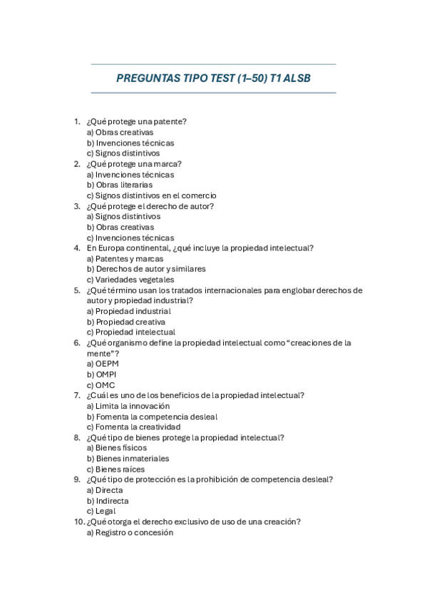 PREGUNTAS TIPO TEST PARCIAL 1 ALSB