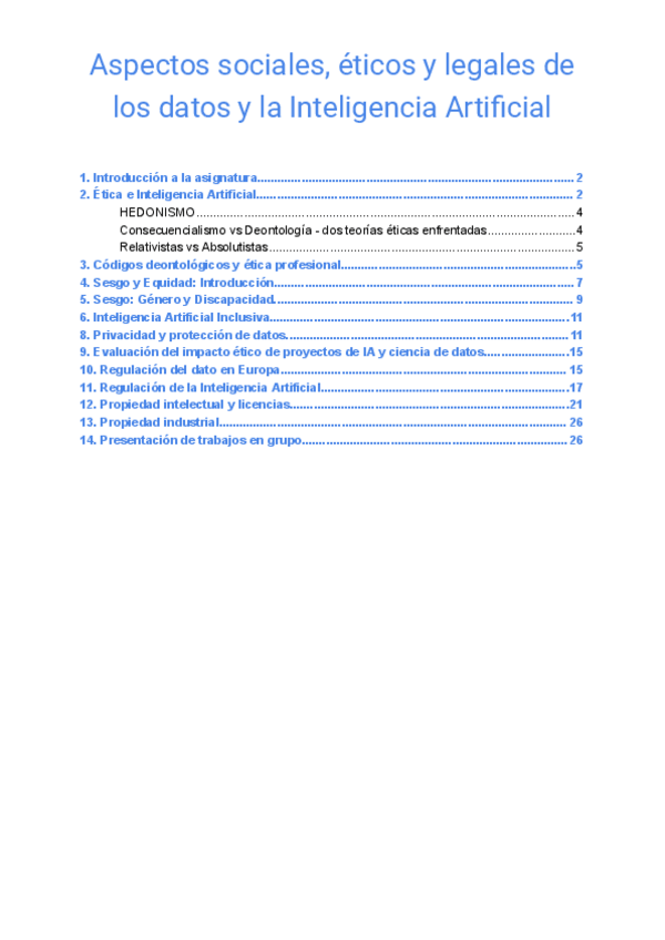 He publicado nuevos apuntes de 2º Aspectos Sociales, Éticos y Legales de los Datos y la Inteligencia Artificial: Etica.pdf