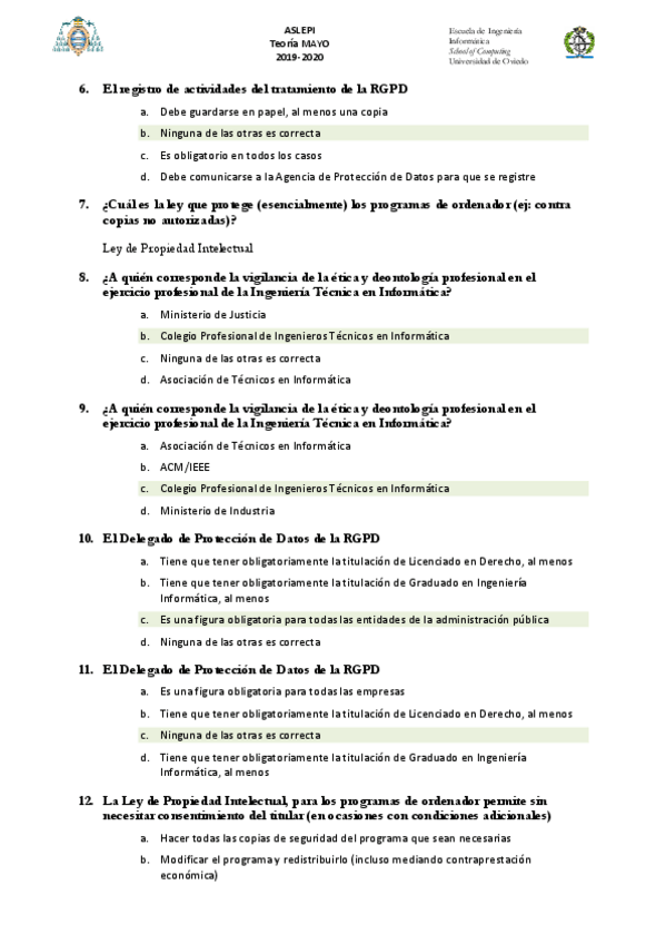 He publicado nuevos examenes de 4º Aspectos sociales, legales, éticos y profesionales de la Informática: ASLEPIMAYO2021010.zip