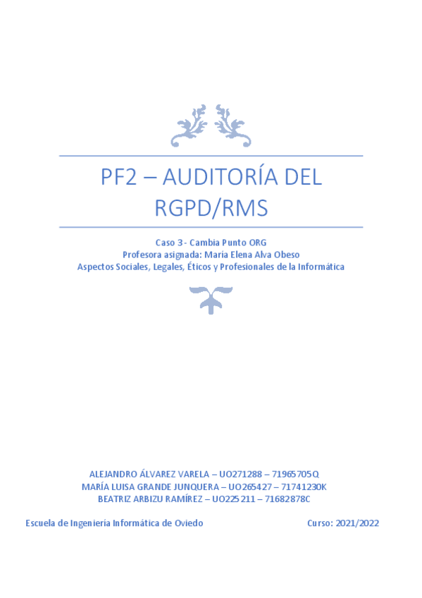 He publicado nuevos practicas de 4º Aspectos sociales, legales, éticos y profesionales de la Informática: AUDITORIA-DEL-RGPDRMS.pdf