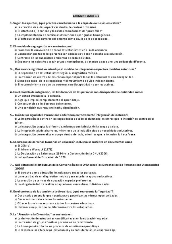 He publicado nuevos examenes de 1º Atención a la Diversidad e Inclusión Educativa: Implicaciones Didácticas: Examen-temas-1-5.pdf