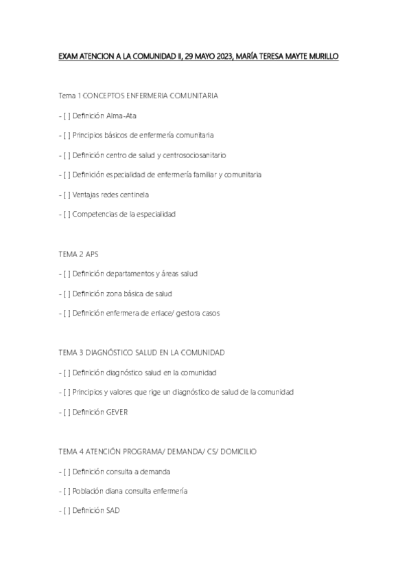 EXAM ATENCION A LA SALUD COMUNIDAD II, 29 MAYO 2023, MARÍA TERESA MAYTE MURILLO