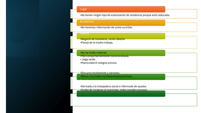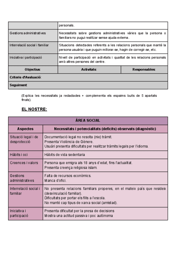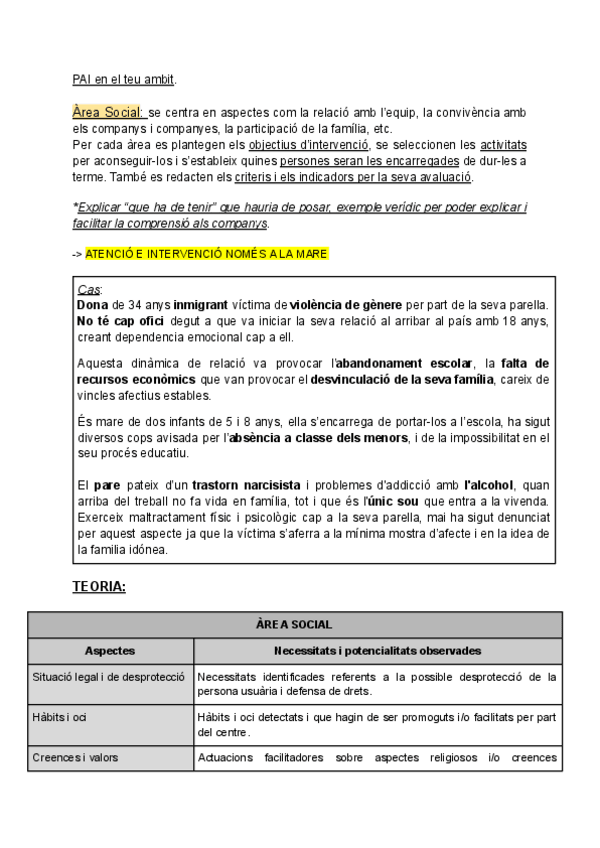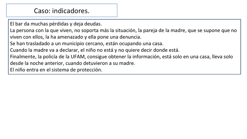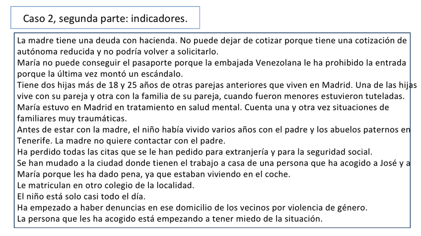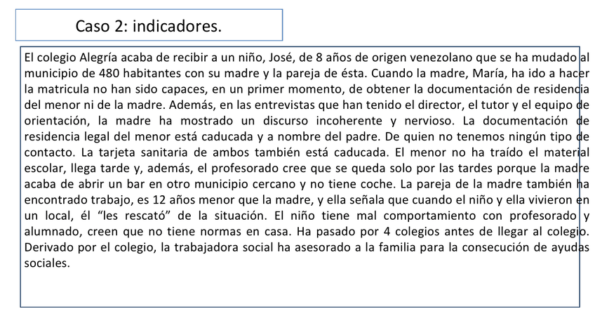 Creación de un caso práctico (familia) para realizar una evaluación y diagnostico de necesidades, determinar los instrumentos de recogida de información, analizar las necesidades, desarrollar las áreas de mejora y crear una propuesta de intervención, fija