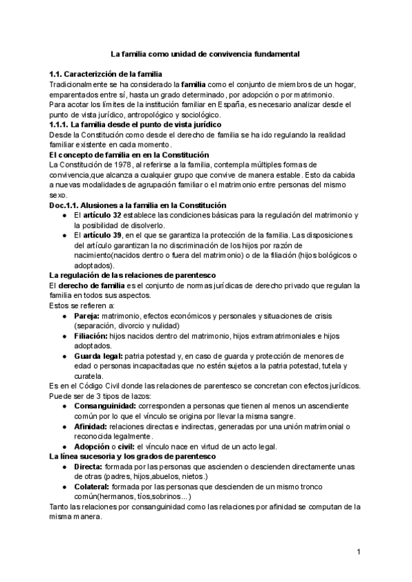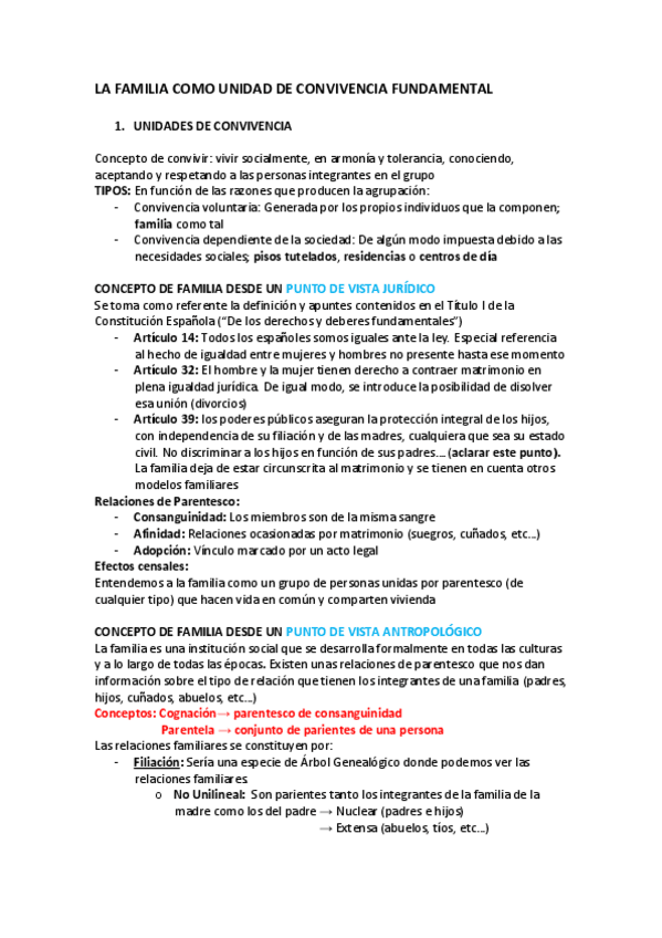 Tema 1: La familia como unidad de convivencia fundamental