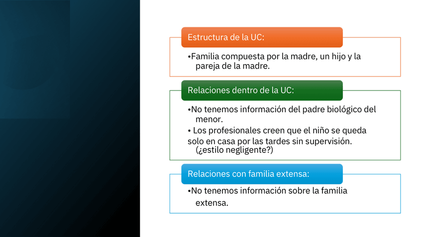 Creación de un caso práctico (familia) para realizar una evaluación y diagnostico de necesidades, determinar los instrumentos de recogida de información, analizar las necesidades, desarrollar las áreas de mejora y crear una propuesta de intervención, fija