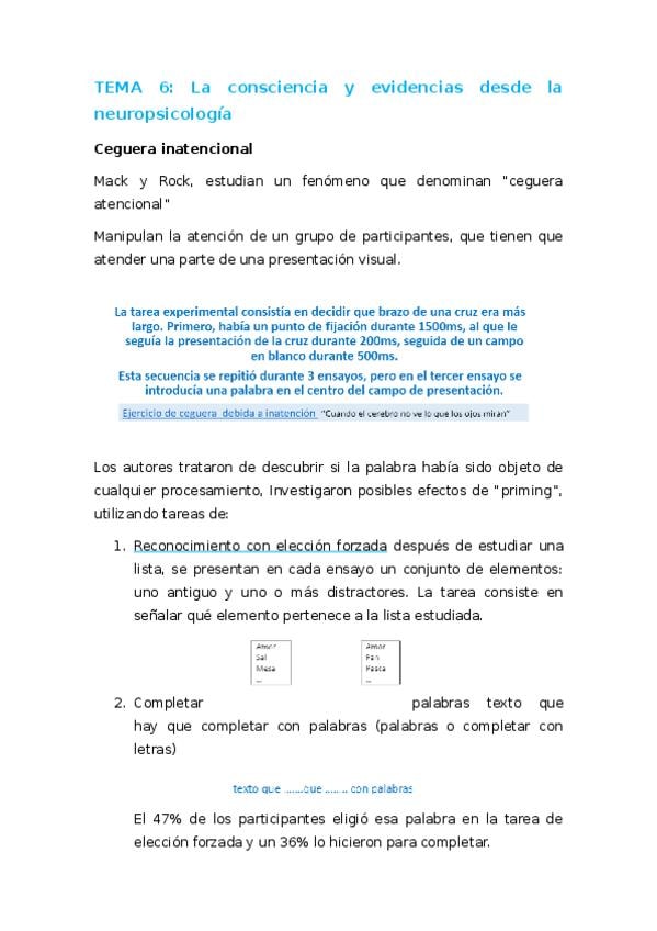 He publicado nuevos apuntes de 1º Atención, Percepción y Memoria: Tema-6-la-consciencia-y-evidencia-desde-la-neuropsicologia.pdf