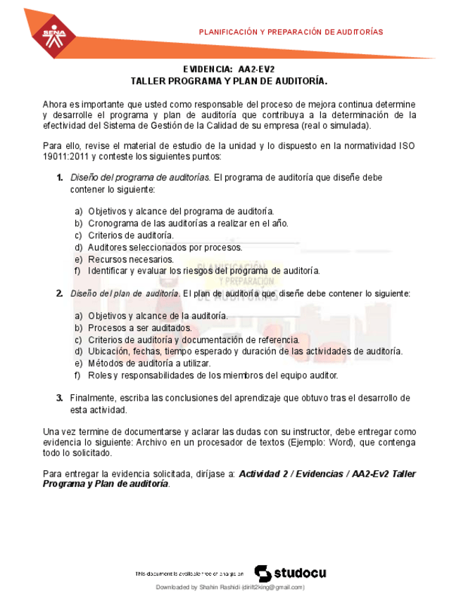 Evidencia aa2 ev2 taller programa y plan de auditoria Human resources management (Yasar Üniversitesi)