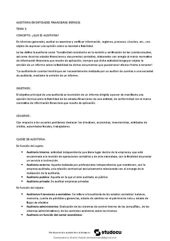 Auditoria EN Entidades Financieras ( Repaso) Contabilidad de Gestión y Auditoria (Universidad de Málaga)