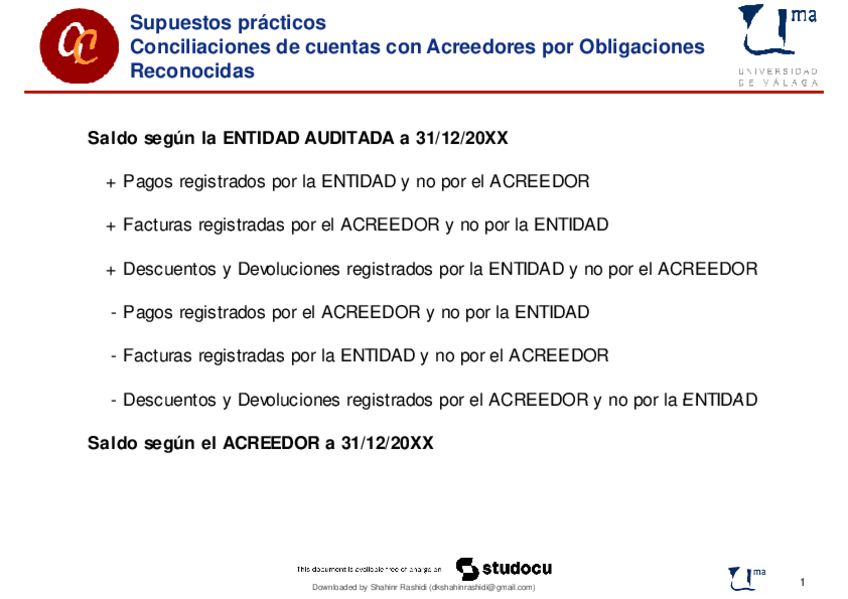 Supuesto 1 Acreedores - Ejercicios Contabilidad de Gestión y Auditoria (Universidad de Málaga)