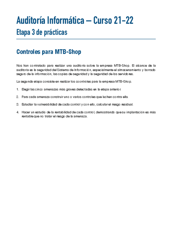 He publicado nuevos practicas de 3º Auditoria Informática: Etapas de prácticas completa