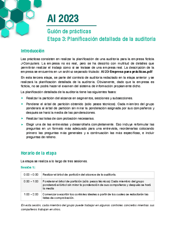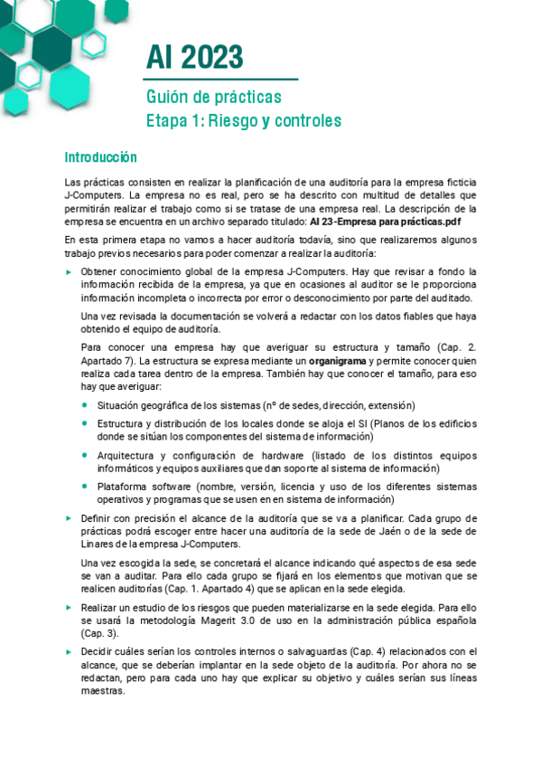 He publicado nuevos practicas de 3º Auditoria Informática: AI-23-Guion-etapa-1.pdf