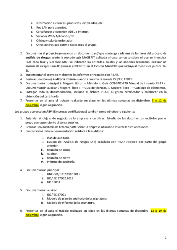 He publicado nuevos practicas de 3º Auditoría Informática I: Enunciados 2º cuatrimestre