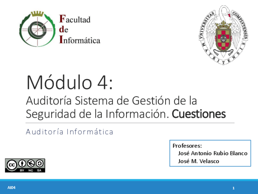 He publicado nuevos apuntes de 3º Auditoría Informática I: TEMA7CUESTIONES.pdf