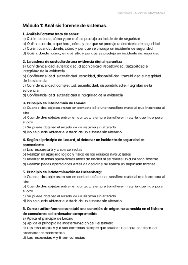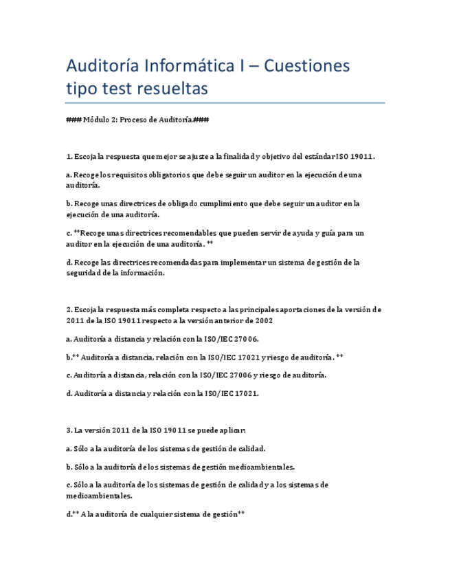 He publicado nuevos test de 4º Auditoria Informática I y II: AI1MOD2cuestiones.pdf