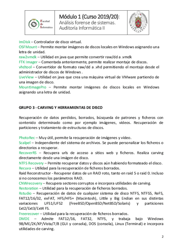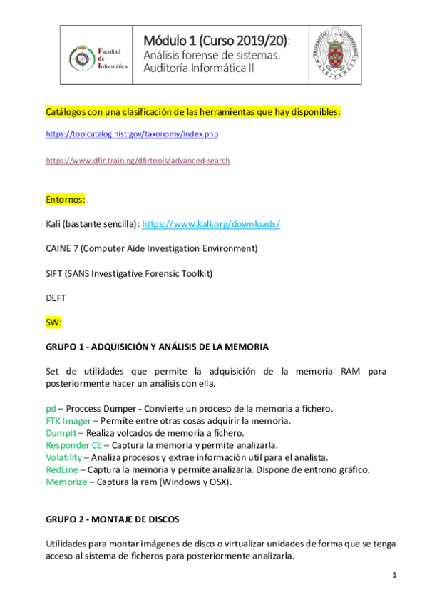 He publicado nuevos apuntes de 4º Auditoria Informática I y II: ListadoHerramientasAnalisisForense-1.pdf