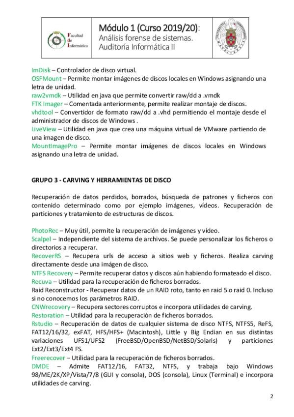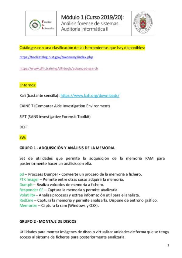 He publicado nuevos apuntes de 3º Auditoría Informática I: ListadoHerramientasAnalisisForense-1.pdf
