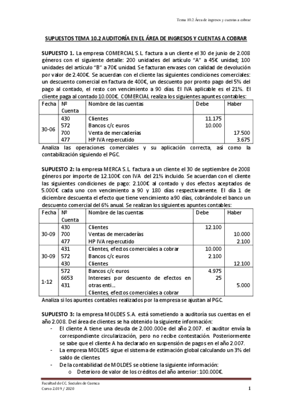 He publicado nuevos ejercicios de 4º Auditoría: Auditoría - ejerc