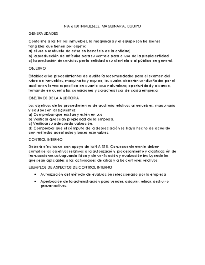 He publicado nuevos apuntes de 5º Auditorías a cuentas de activo: NIA-6150-Inmuebles-Maquinaria-Equipo.pdf