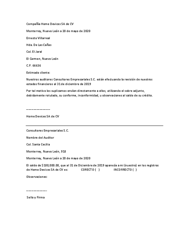 He publicado nuevos ejercicios de 5º Auditorías a cuentas de activo: Ejemplo-Carta-Confrimacion-Clientes-No-Contestada.pdf