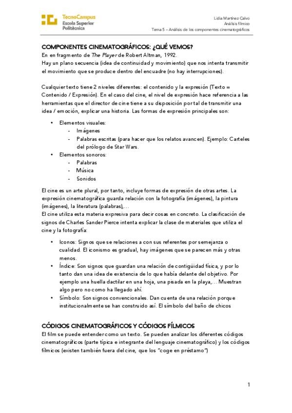 He publicado nuevos apuntes de 4º Aula de Cinema: Tema 5 - análisis de los componentes cinematográficos.pdf