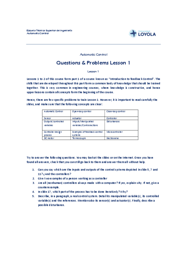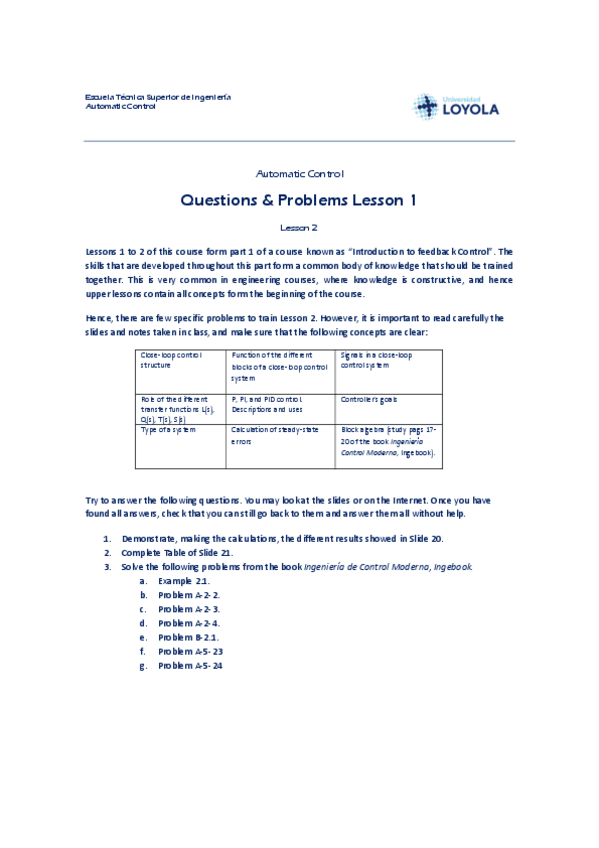 He publicado nuevos ejercicios de 2º Automatic Control: Questions-and-Problems-Lesson-1.pdf