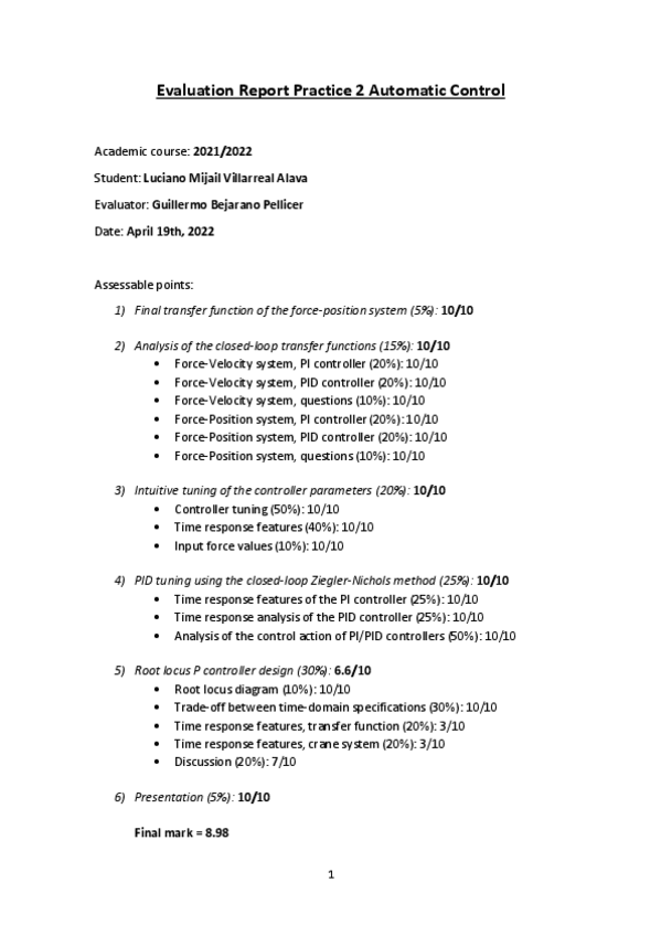 He publicado nuevos practicas de 2º Automatic Control: EvaluationReportLMVillareal.pdf