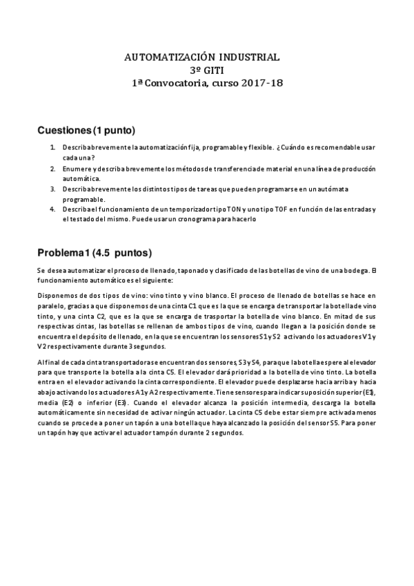 He publicado nuevos examenes de 3º Automatización Industrial: Conv22018-201919.pdf