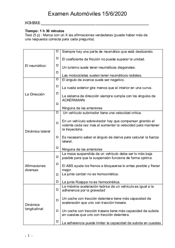 Exámenes automóviles resueltos
