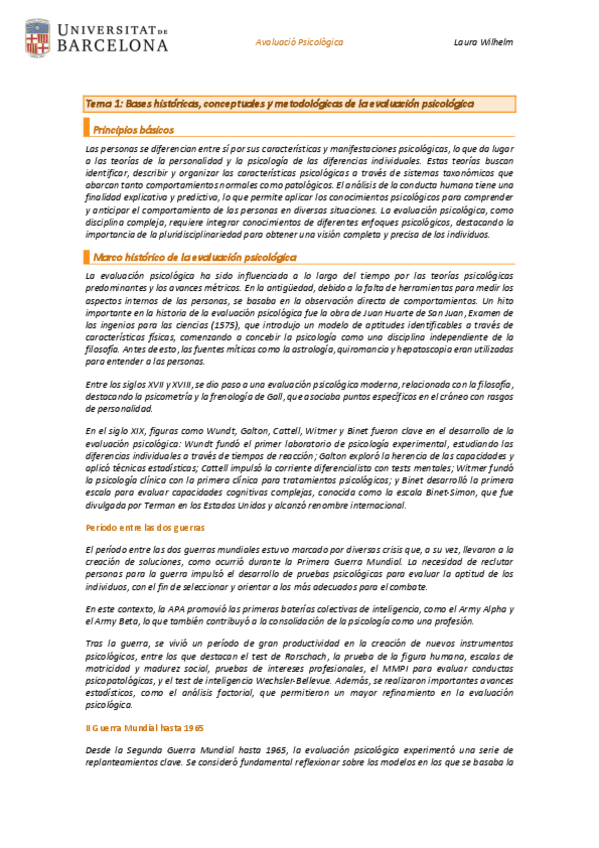 He publicado nuevos apuntes de 2º Avaluació Psicològica: Tema 1: Bases Históricas, Conceptuales y Metodologías de la Evaluación Psicológica.pdf
