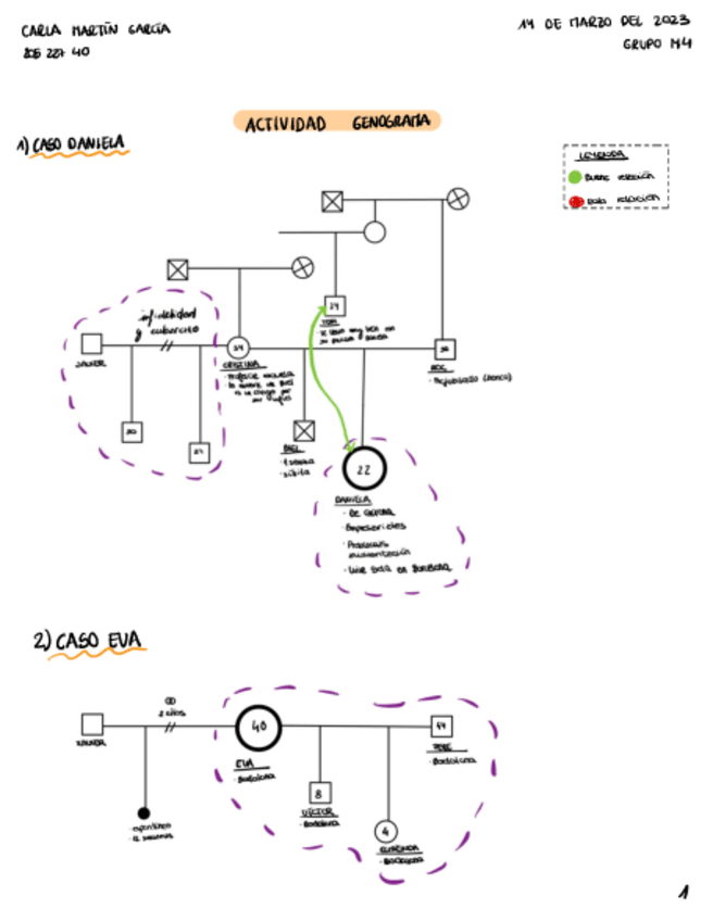 Explicación sobre los genogramas y actividades de ejemplo